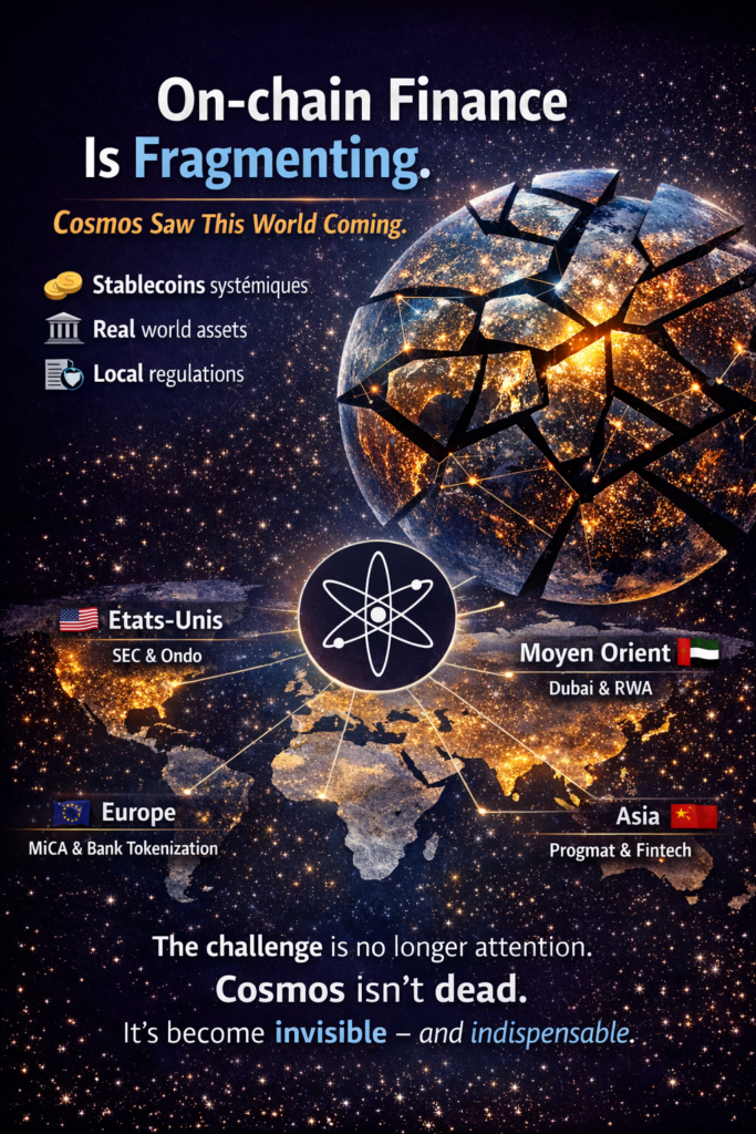 The emergence of multiple tokenization centers does not weaken the Cosmos thesis — it strengthens it. The more regional, regulated, and specialized on-chain finance becomes, the greater the need for connective tissue.